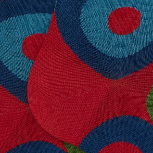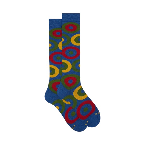 Calzini uomo lunghi a fantasia della Gallo con divertente e colorata fantasia a cerchi concentrici.
