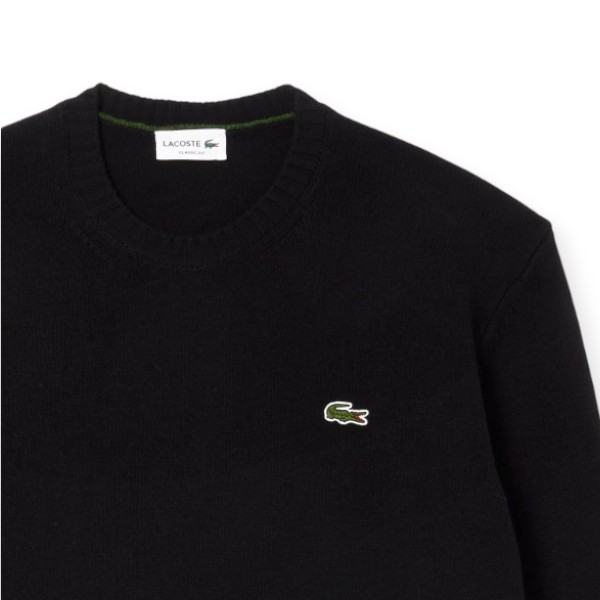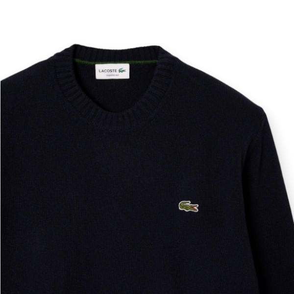 Maglia girocollo Lacoste da uomo realizzata in soffice lana cardata di prima qualità con identificativo coccodrillo sul petto.