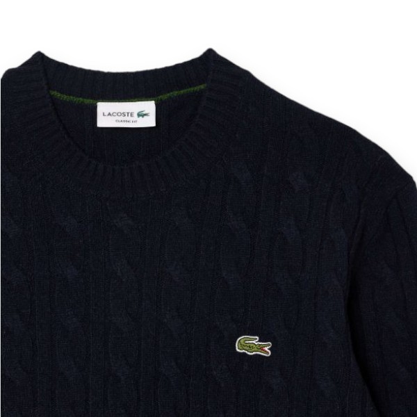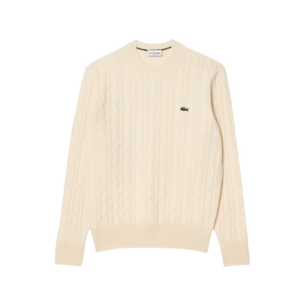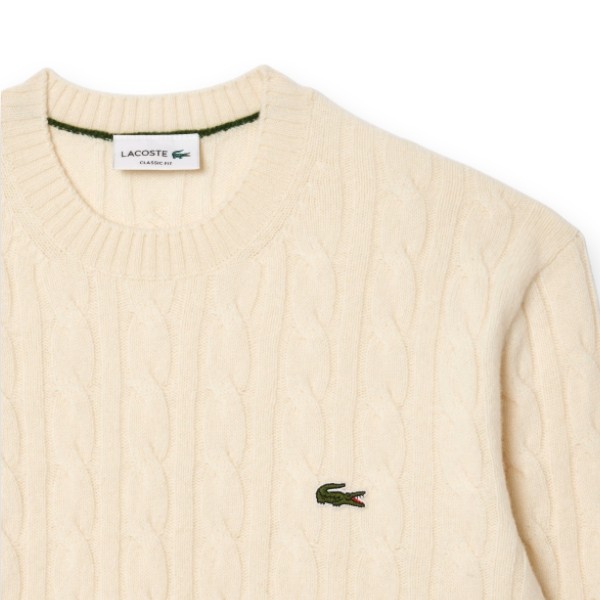 Maglione Lacoste da uomo in morbida e spessa lana cardata con dettagli a treccia.
